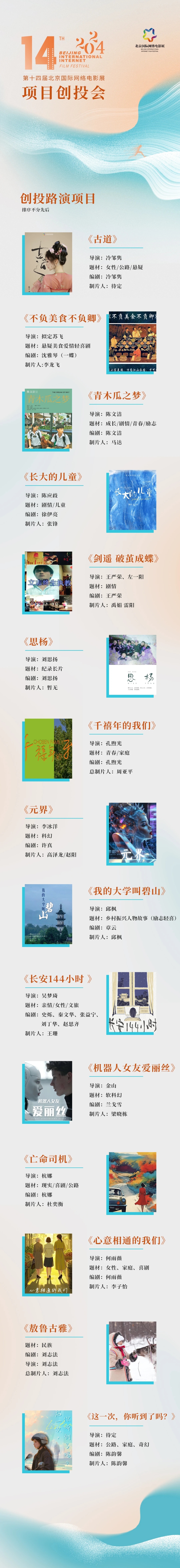2024年第十四届北京国际网络电影展光年创投路演名单正式公布。光年创投大会以“破局”之势深耕青年导演创作市场,致力于利用影展的资源优势、品牌优势、专业优势等打破资源壁垒,为影视行业的“新导演、新力量”打造创作竞争优势,并不断驱动路演项目与大荧幕的“双向奔赴”。这场“双向奔赴”需要我们先拿出“好剧本、好项目、好电影”。