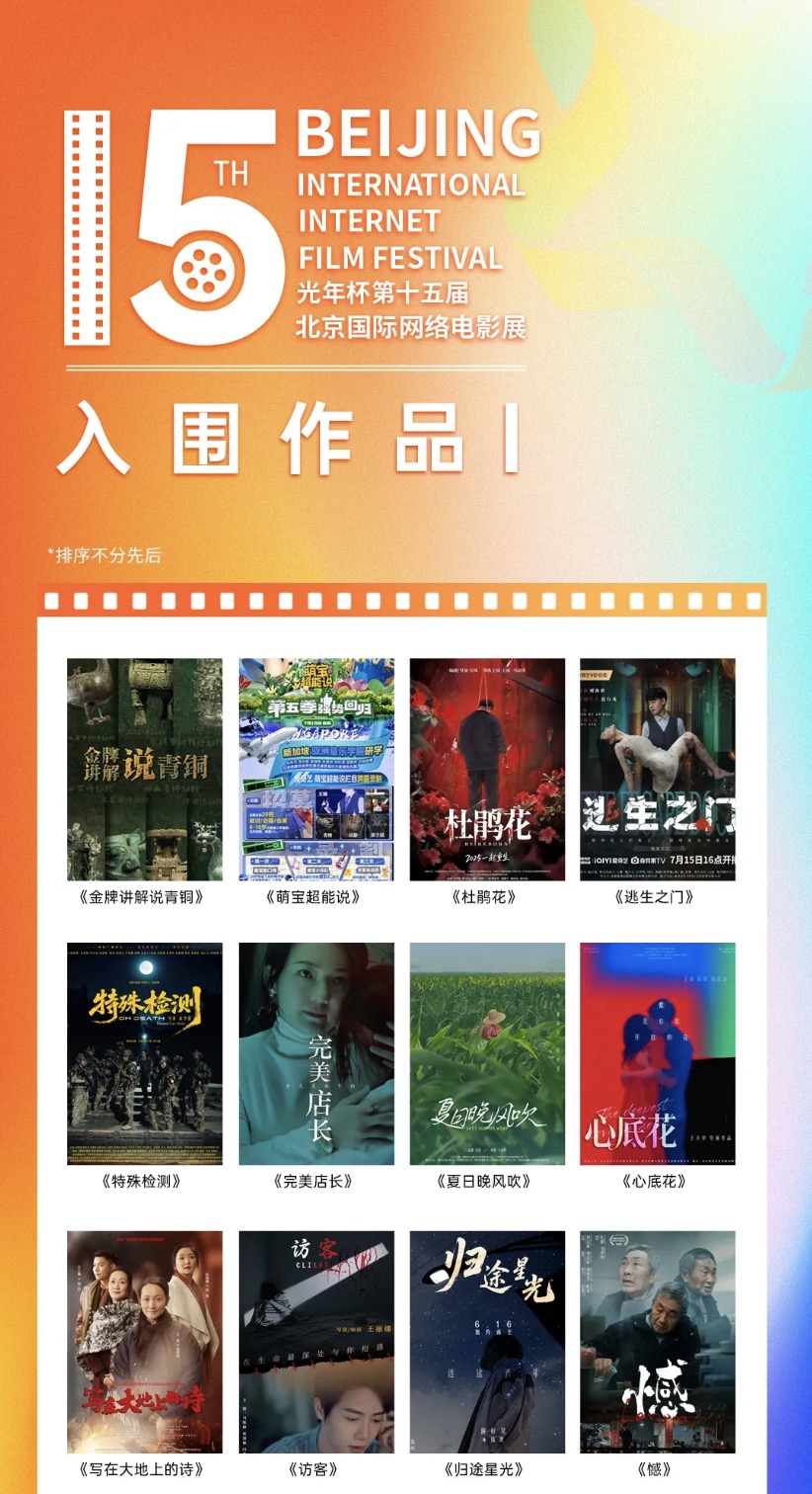 今朝影展,以“精”为魂,以“质”为骨,以严格标尺丈量每一寸光影。入围之作,每一部都彰显着独特的魅力,口碑与价值双翼齐飞。我们期待第十五届北京国际网络电影展,如春江潮水,佳作奔涌,精品荟萃,共同筑就电影产业高质量发展的生态绿洲。在拓宽赛道的征途上,我们与中国电影新力量携手并肩,以心为帆,以梦为桨,在时代的浪潮中破浪前行,共赴一场光影与梦想的盛宴,同赢一个光明与璀璨的未来!