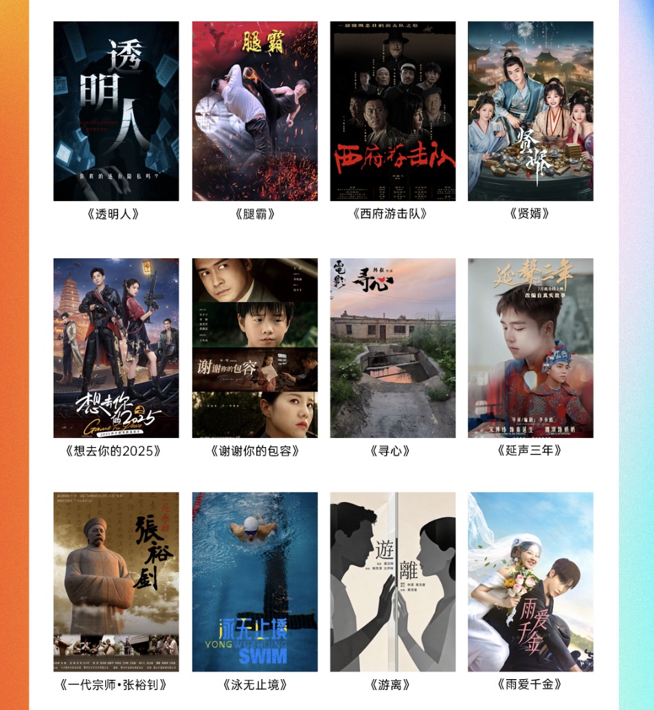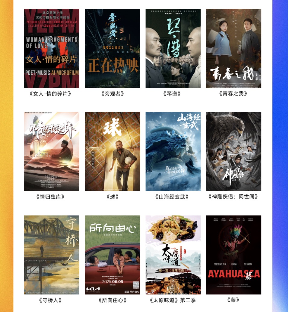 参与评选的影片有《东江风云之星火燎原》、《青春之我》等主旋律影片,它们以细腻的镜头语言,讲述着平凡英雄的无私无畏;有《颜真卿》、《琴谱》等历史文化佳作,用历史影像唤醒文化的温度;有《腿霸》、《神雕侠侣:问世间》等动作佳作让我们在荧幕前热血沸腾;更有《守桥人》等公益影片,用温暖的叙事传递社会关怀,这些作品经过严格筛选,不仅展现了电影艺术的多元魅力,更以影像的力量传递着时代的温度。