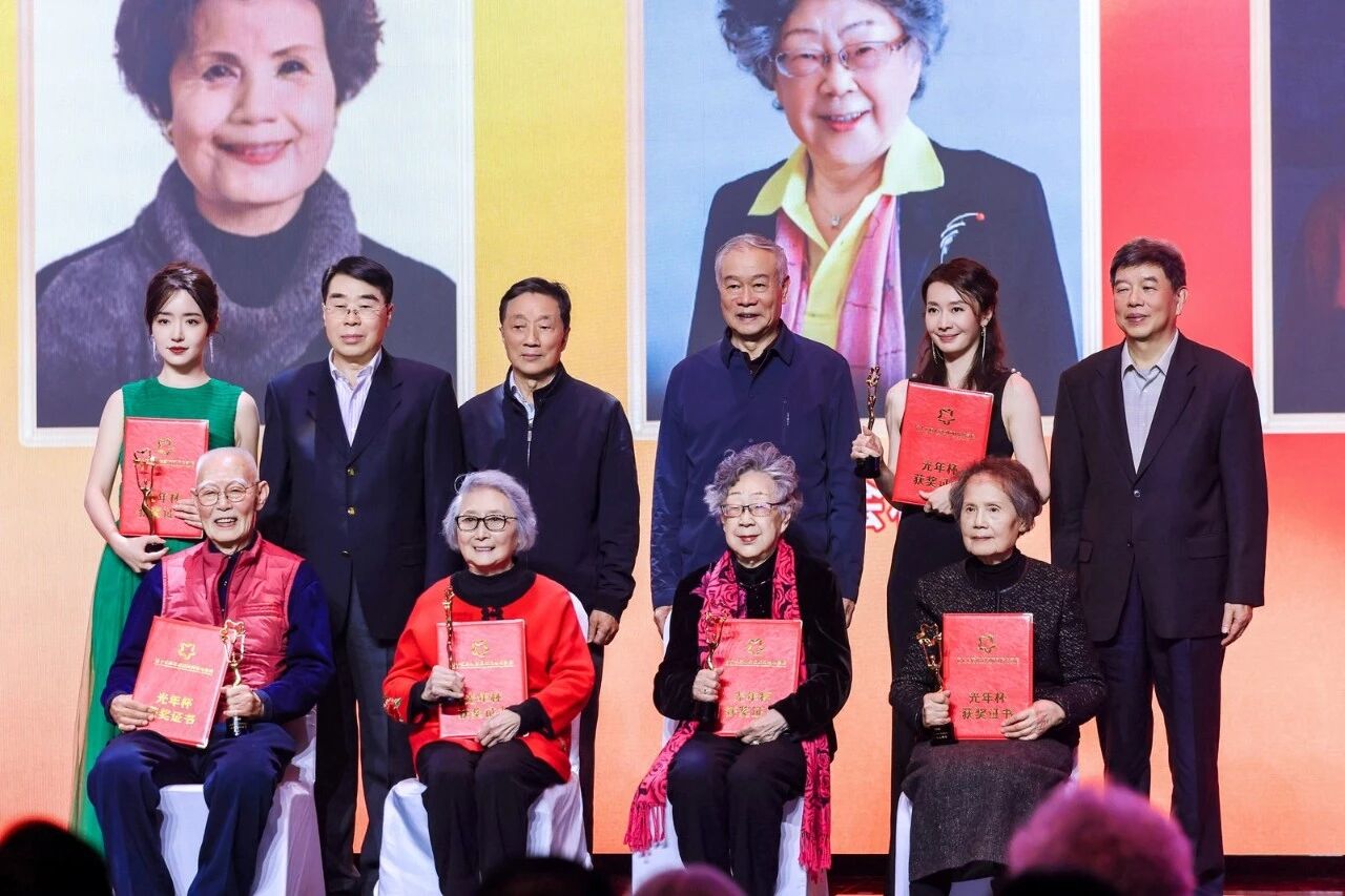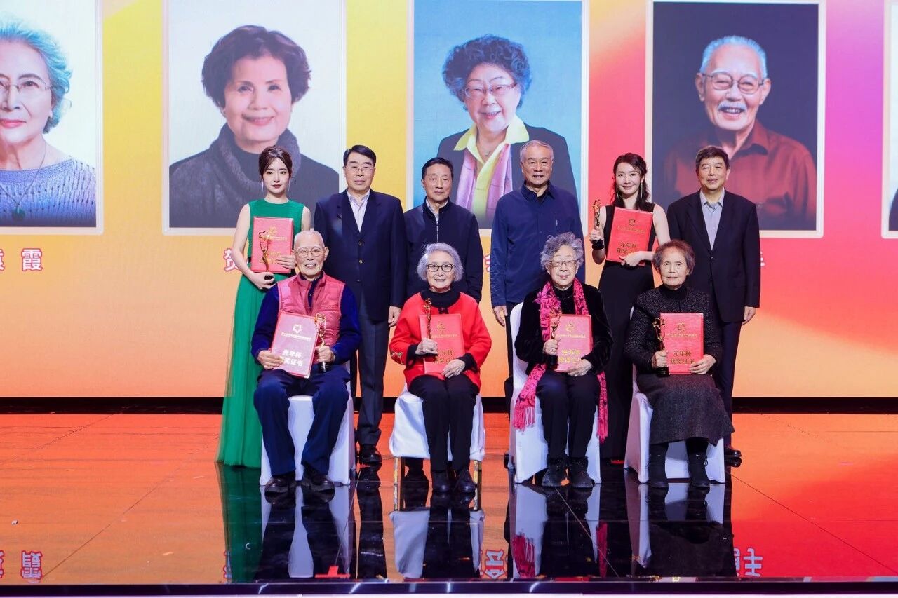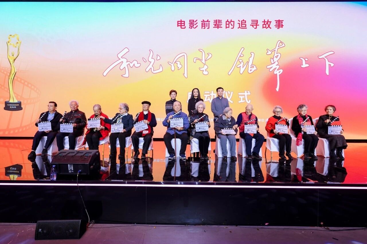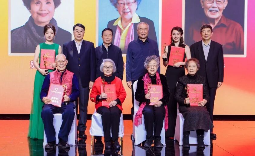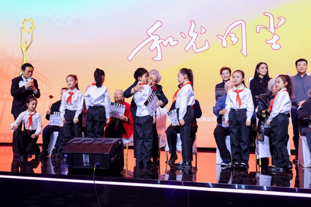 典礼特别设置了 “终身荣誉”颁发环节,向十五年来为影展做出突出贡献的六位90岁以上的前辈艺术家致敬。其中90岁以上高龄的袁霞、贺小书,黄会林、张勇手前辈亲临现场,接受了这份荣誉。而未能到场的全如玢、吴云芳老师也通过视频送上了祝福。紧接着,现场启动了纪录影片 《和光同尘 银幕上下》的拍摄计划,并邀请了师伟、李明启、王苏娅,以及丁荫楠、高放、黄健中、宋崇、刘建中等在内的共十二位“80后”、“90后”老艺术家齐聚舞台,接受了少先队员的献花,这些影坛常青树们共同为这部记录他们艺术人生的纪录片打板开机。这一系列环节不仅表达了对历史的铭记,更完成了电影精神从前辈到后辈的直观传递,场面庄严而温暖。