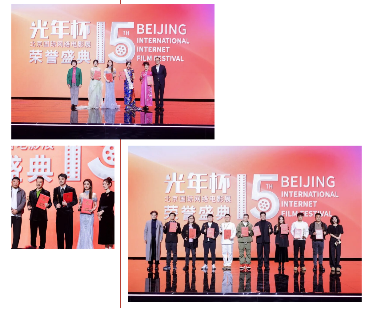 2026年1月9日,第十五届北京国际网络电影节(展)荣誉典礼在北京隆重举行。本届影展以“让每道光都有世界回响”为主题,超2000名来自全国各地的导演和创作者,100多位艺术家和领导嘉宾,100余家媒体,共同见证行业的高光时刻。本次活动,覆盖60余万专业影视从业者,超1亿的话题讨论。本届影展共收到参选影片两千余部,其中一百五十余部进入终审,吸引众多业内领导、资深电影艺术家与新生代创作者共聚一堂,见证过去一年中国网络电影的荣耀时刻。