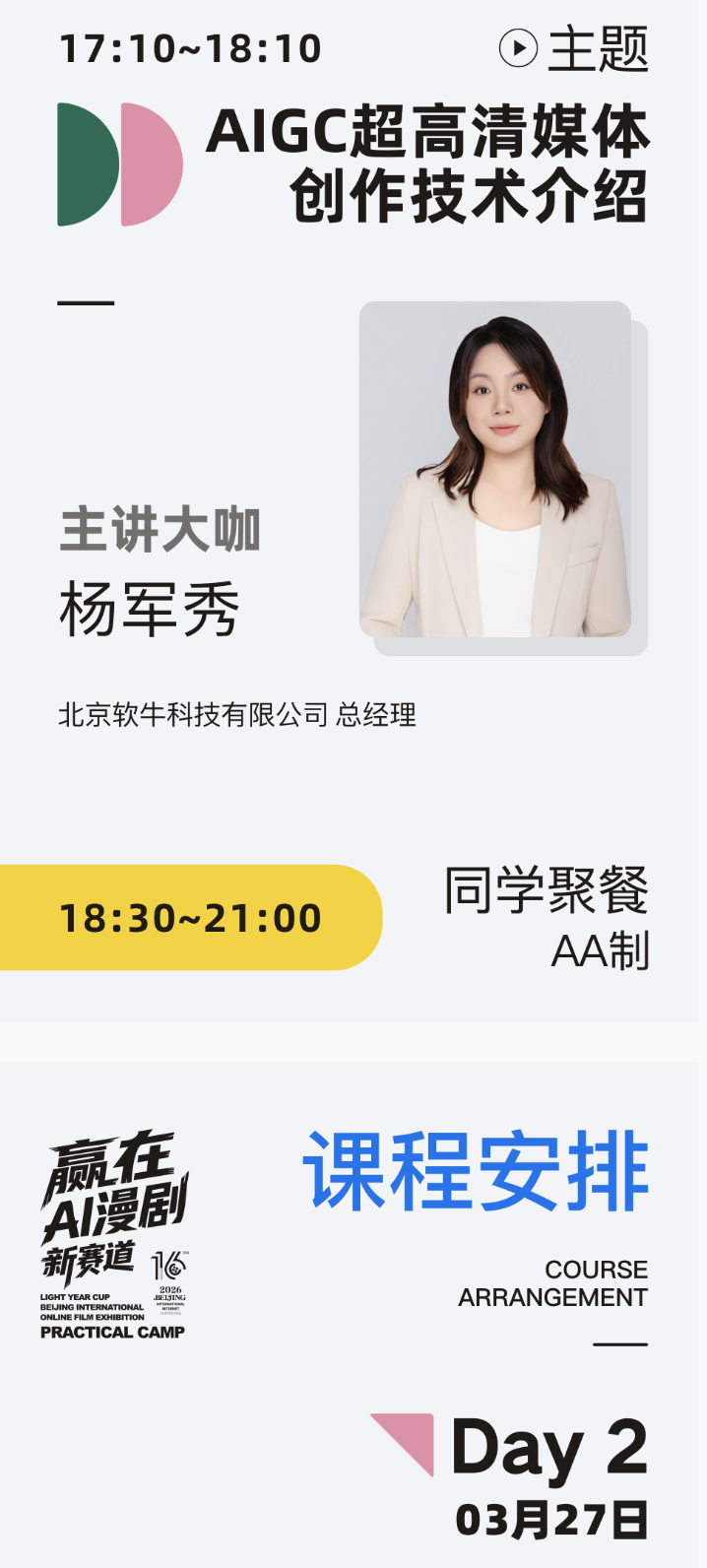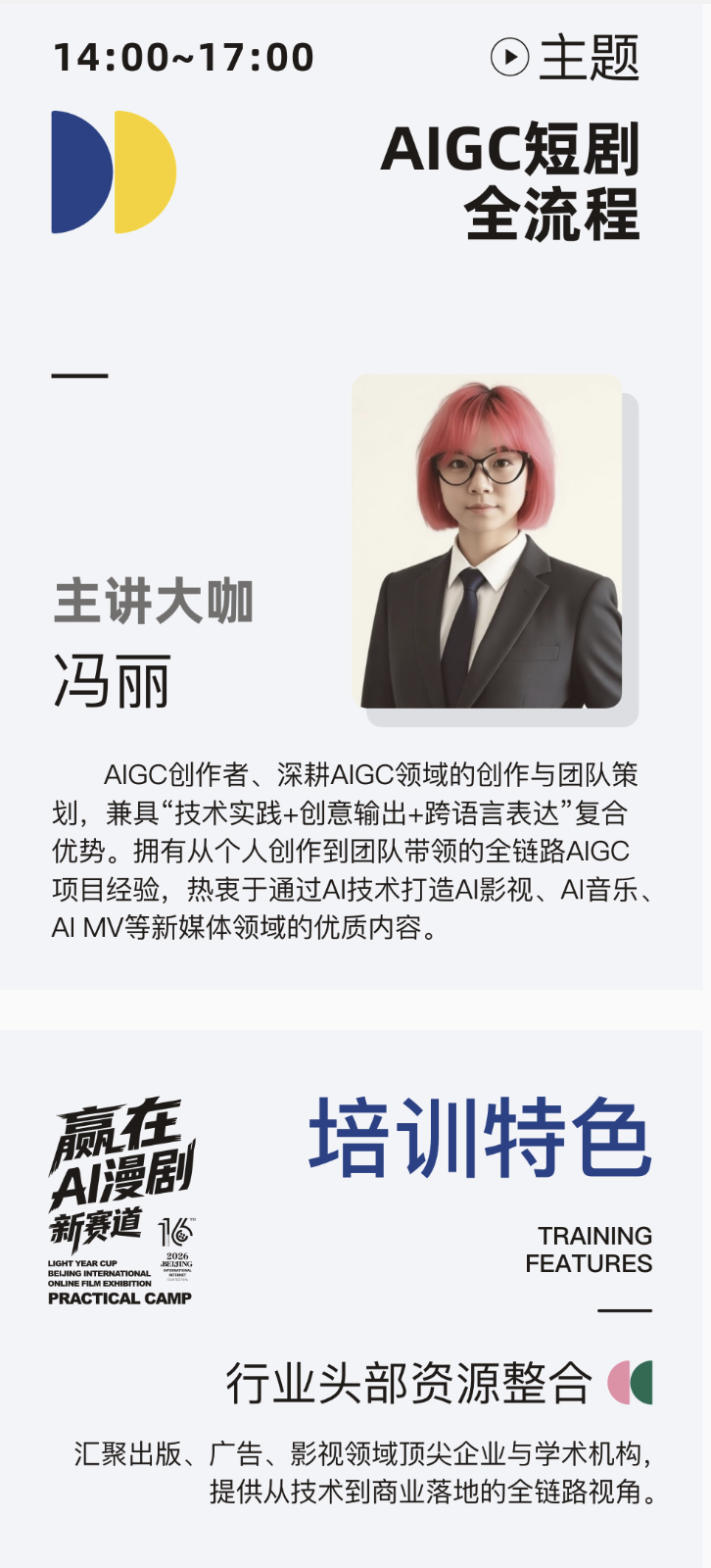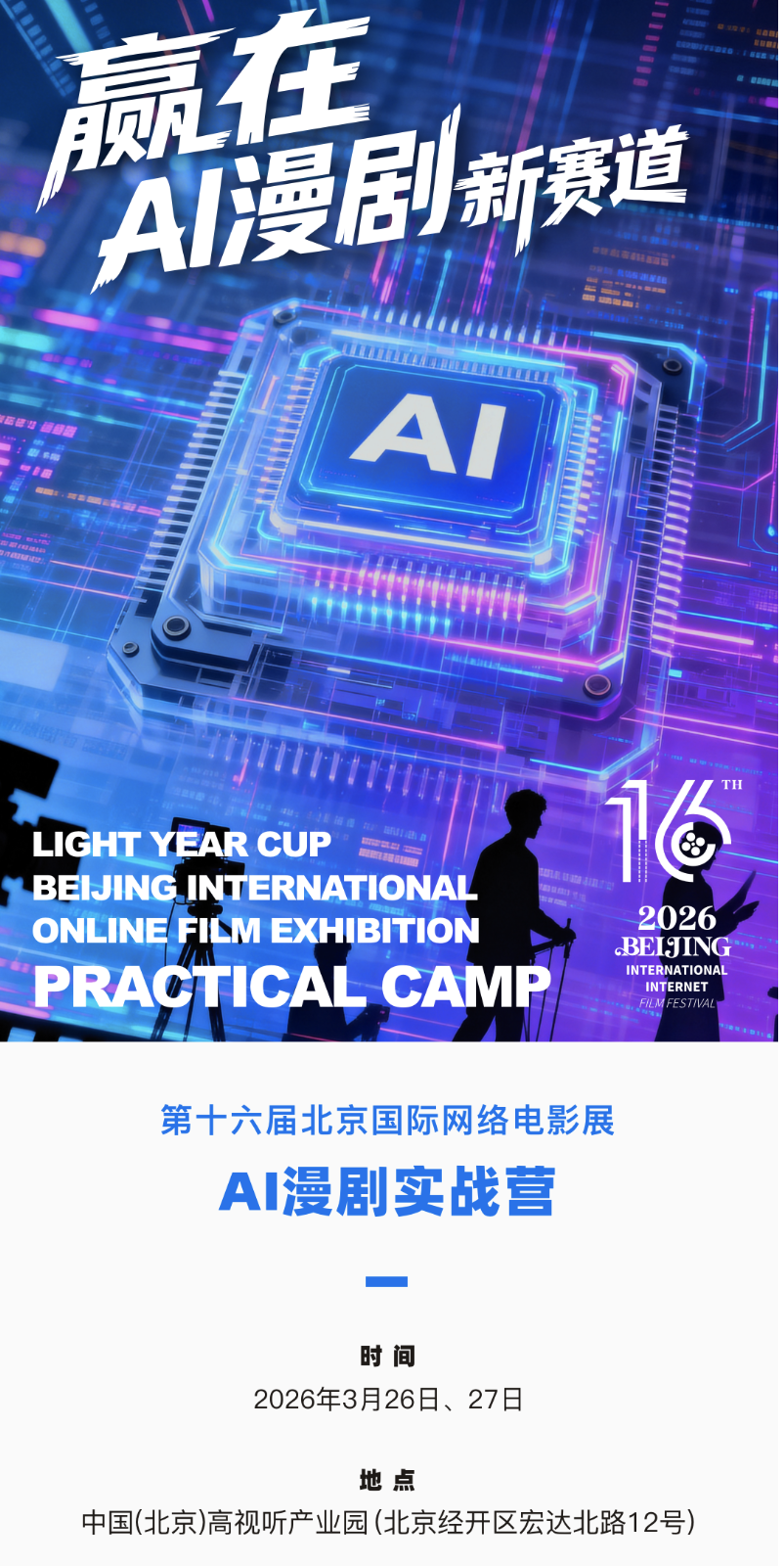 北京国际网络影展组委会在中国广播电视社会组织联合会短视频短片专业委员会的指导下及中国(北京)高视听产业园的支持下将于2026年3月26日至27日推出 “AIGC漫剧实战精英集训营”。旨在培养既懂前沿AI工具,更具备核心叙事审美与商业操盘能力的复合型人才。