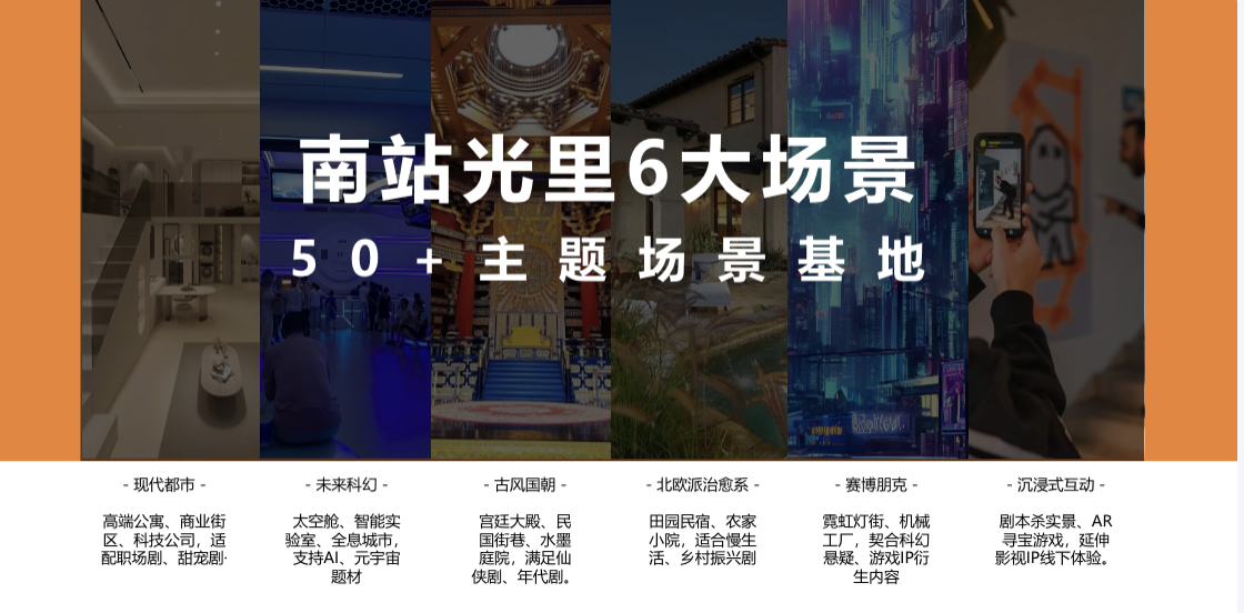 南站·光里影视基地作为影视产业的新兴力量,拥有得天独厚的优势。基地内精心规划并打造了类型丰富、风格多样的影视拍摄场景。总规划用地7万平方米、一期项目体量3.6万平方米、影视基地1.6万平方米、4星级酒店93个房间、演员公寓81个房间、一期商业商铺64个。从现代感十足的时尚空间到充满历史韵味的复古区域,每一处场景都经过专业设计团队的精心雕琢,在布局、装饰等方面都达到了极高的水准,能够全方位满足各类影视作品的拍摄需求,为影视创作提供了坚实的环境支撑。